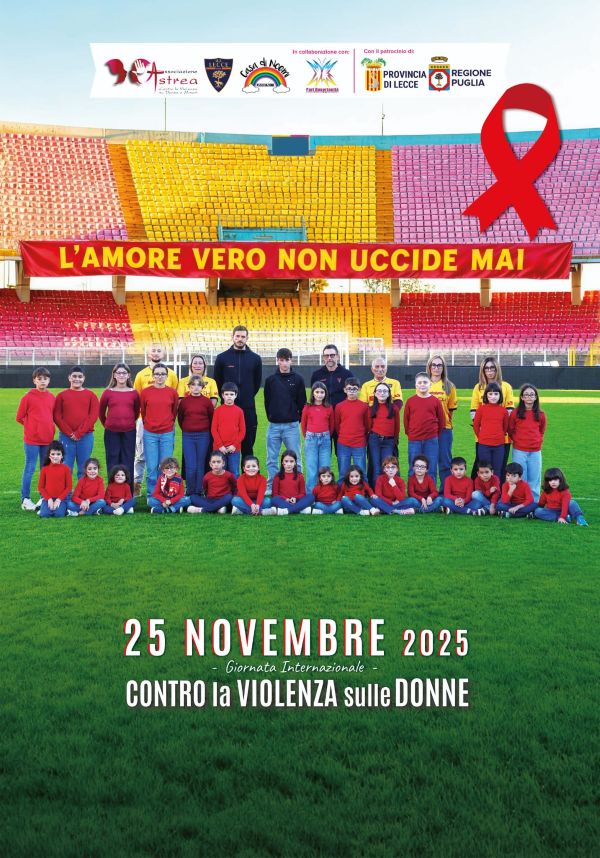 “L’Amore vero non uccide mai”. È il messaggio della campagna di sensibilizzazione lanciata in occasione della “Giornata internazionale per l’eliminazione della violenza sulle donne”, attraverso un manifesto realizzato dalle associazioni Astrea e Casa di Noemi e dall’Unione Sportiva Lecce, in collaborazione con la Commissione provinciale Pari opportunità e con il patrocinio della Provincia di Lecce.