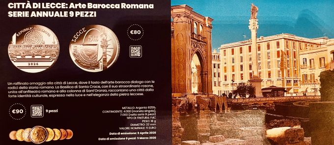 Collezione numismatica 2026 coniata dalla Zecca dello Stato: presentata la moneta dedicata alla città di Lecce