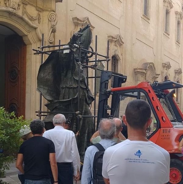 Nella mattinata di oggi, 30 luglio 2025, la statua originale di Sant’Oronzo, che dopo il restauro era posizionata nell’atrio di Palazzo Carafa, è stata trasferita all’interno del Sedile. La cerimonia ufficiale dell’evento è prevista sabato 23 agosto, in apertura della festa in onore dei Santi Patroni di Lecce.