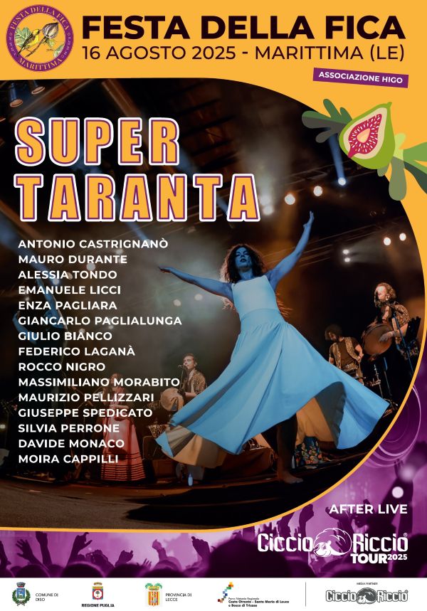 Sabato 16 agosto 2025, a Marittima (Diso), si terrà il tradizionale evento salentino “Festa della Fica”, curato dall’associazione Higo. La Festa, che è stata presentata nei giorni scorsi presso la Provincia di Lecce, sarà dislocata per tutto il centro storico di Marittima, con la piazza, le corti e i monumenti antichi adibiti per l’occasione a luoghi d’arte e di intrattenimento. Piazza Principe Umberto sarà animata dagli stand di artigiani, artisti, pittori, fotografi, fumettisti e illustratori.