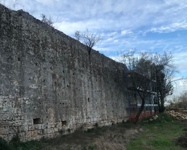 I resti di una impalcatura, indicano che per conto del Comune galatonese, proprietario dal 2011, è stato interessato da lavori di consolidamento e restauro soltanto avviati e presto interrotti. Ma già così, l’imponenza della struttura, che per lo studioso di archeologia medievale dell’Università del Salento, Paul Arthur, è una delle fortificazioni medievali più antiche sopravvissute nel Tacco d’Italia, stupisce per la bellezza e la magia fuori e dentro le mura, che unitamente al risultato della contaminazione di stili architettonici, rimandano peraltro al mondo islamico. Alta otto metri e spessa due e mezzo, a dispetto di tutto, la grande recinzione si è ben conservata, e lungo di essa corrono sui quattro lati, due di cinquanta e due di settantacinque metri, le torri rimaste, che private del fossato purtroppo interrato, appaiono come sospese sulla campagna, da una parte confinante con il binario della linea ferroviaria per la vicina Neviano.